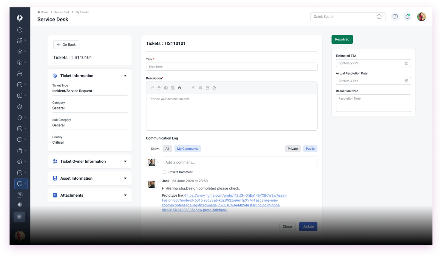 Manage all IT requests, incidents, and tickets in one place. Staff can easily log issues, track status, and communicate with IT teams without switching platforms.