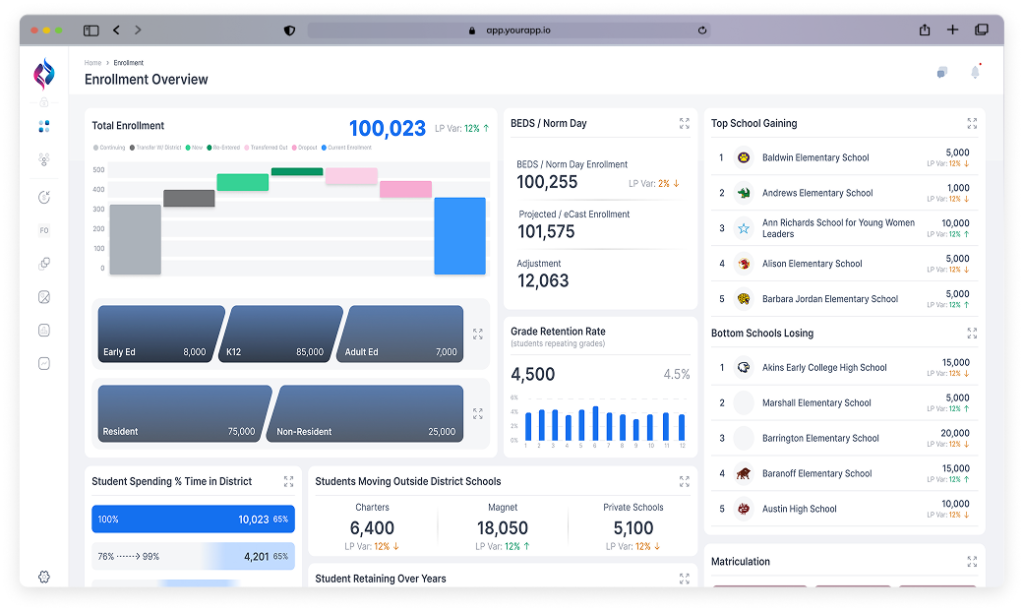 • Executive Scenario Modeling: See how real-time data visualizes your district’s growth.